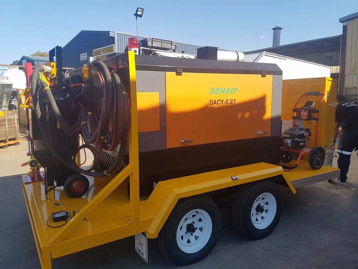 Переносные винтовые воздушные компрессоры Denair широко используются во всех видах тяжелых условий эксплуатации. Они востребованы в таких отраслях, такие как горнодобывающая промышленность, гидроэнергетика, добыча нефти и газа, скважина, верфь, строительство, химическая промышленность, карьер, пескоструйная обработка, опрессовка трубопровода, общественные работы, и т.д.